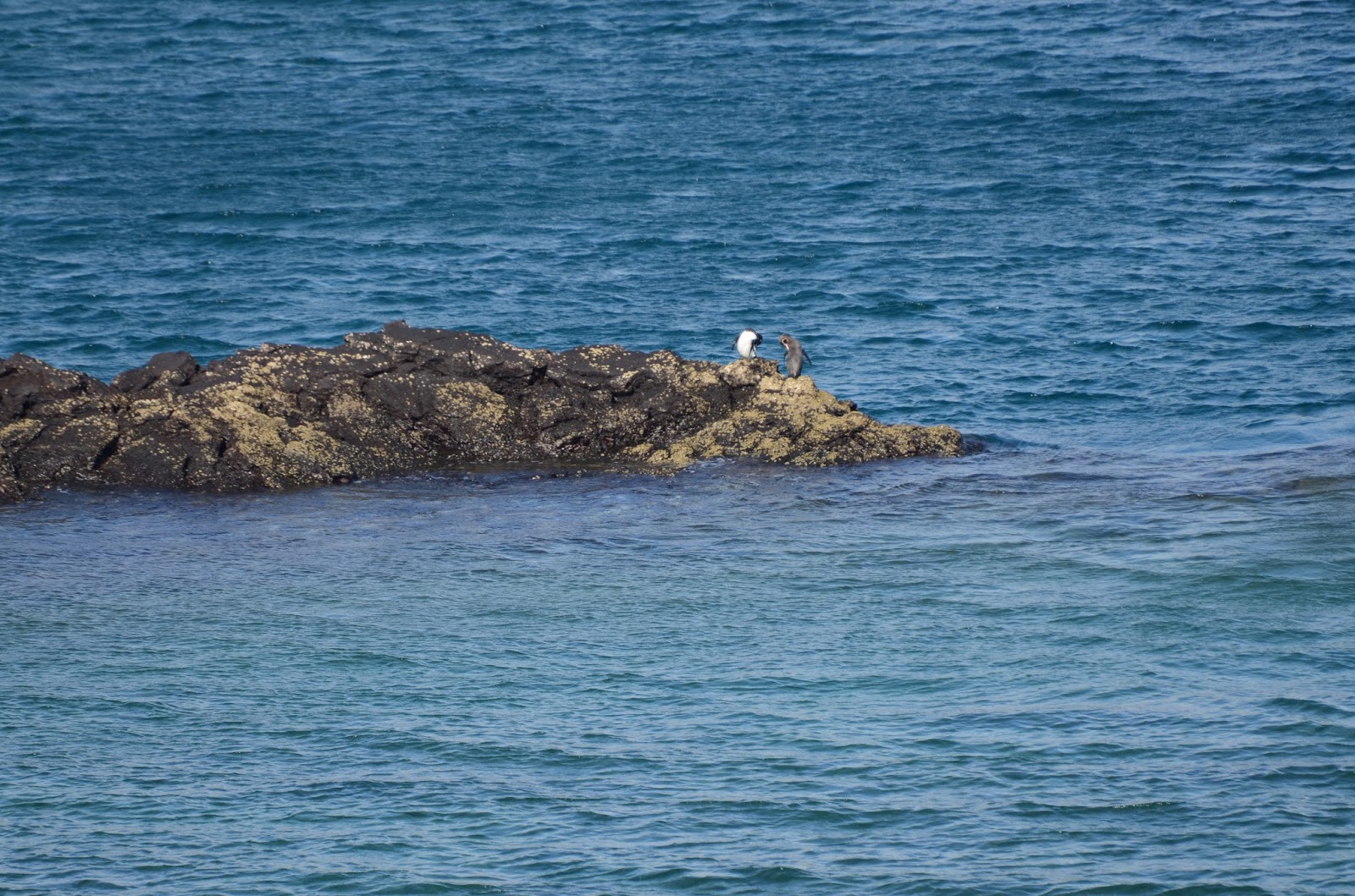 Our first landing was on Bartolome, a tiny island just off east of Santiago Island. We hiked 388 steps to one of the Galapagos Islands’ most beautiful panoramic viewpoints. Our watching out for Galapagos penguins was successful. Two of them sat on the rocks, but unfortunately very far away.